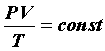 Аналогично получим новую форму закона Шарля : P/T= const; P1/Т1= P2/Т2; Законы Шарля и Гей-Люссака можно объединить в один общий закон, связывающий параметры P, V и T при неизменной массе газа. Действительно, предположим, что начальное состояние газа при m = const характеризуется параметрами V1, Р1, Т1, а конечное – соответственно V2, Р2, Т2. Пусть переход из начального состояния в конечное состояние происходит с помощью двух процессов: изотермического и изобарического. В ходе первого процесса изменим давление с Р1 на Р2. Объем, который займет газ после этого перехода, обозначим V, тогда по закону Бойля–Мариотта, Р1V1 = Р2V, откуда