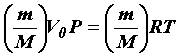Из уравнения (29) легко получить уравнение для любой массы газа. Газ массой m займет объем V = V0(m/M), где М – масса 1 моль, m/M – число молей газа. Умножив обе части уравнения (29) на m/M, получим Так как