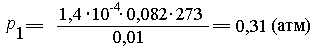 Не следует забывать преобразовывать температуру из градусов Цельсия в кельвины: (273 оС + 26 оС) = 299 K. Вообще говоря, чтобы не ошибиться в подобных вычислениях, нужно внимательно следить за размерностью величин, подставляемых в уравнение Клапейрона-Менделеева. Если давление дается в мм ртутного столба, то нужно перевести его в атмосферы, исходя из соотношения: 1 атм = 760 мм рт. ст. Давление, заданное в паскалях (Па), также можно перевести в атмосферы, исходя из того, что 101325 Па = 1 атм. ** Можно проводить вычисления и в системе СИ, где объем измеряется в м3, а давление - в Па. Тогда используется значение газовой постоянной для системы СИ: R = 8,314 Дж/K·моль. П ример решения задачи 2. Газообразный хлор массой 0,01 г, находящийся в запаянной ампуле объемом 10 см3, нагревают от 0 до 273oС. Чему равно начальное давление хлора при 0oС и при 273oС? Решение. Мr(Сl2) =70,9; отсюда 0,01 г хлора соответствует 1,4