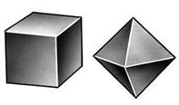 Слева изображен кристалл каменной соли (NaCl), а справа кристалл октаэдрической формы – кристалл хромокалиевых квасцов.