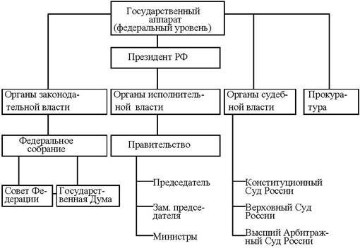 Представим структуру государственного аппарата на примере Российской Федерации.