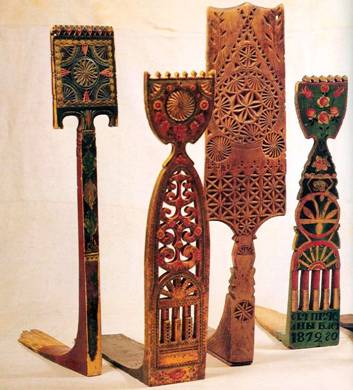 Прялки пришли к нам из далёкой древности. Это был исконно женский труд – прясть пряжу. «Пряслице» - так называлась прялка в Древней Руси. С осени до Великого Поста в «низеньких светёлках» при лучине с тихой песней пряхи сидели за своей работой до полуночи. Прялки, пришедшие к нам из далёкого прошлого, ни одна не повторяет другую. У каждой есть своя особенность. Видимо, каждая хозяйка прялки, да и хозяин, скорее всего, приложили свои усилия, выдумку и фантазию для украшения, удобства, для облегчения труда. На Руси прялки делали из клёна, осины, берёзы, липы.