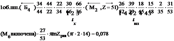 – соответственно : блок Б4 «влево» по схеме, муфта М2 «влево», шестерня Z=51 «вправо» (выключена); m и Zрш – параметры реечной шестерни.