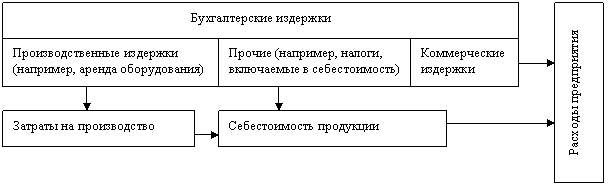 Таким образом, понятие «расходы» является обобщающим термином, объединяющим в себе затраты на производство и издержки, частично относимые на себестоимость незавершенного производства и изготовленной продукции, выполненных работ и оказанных услуг за определенный (отчетный) период.