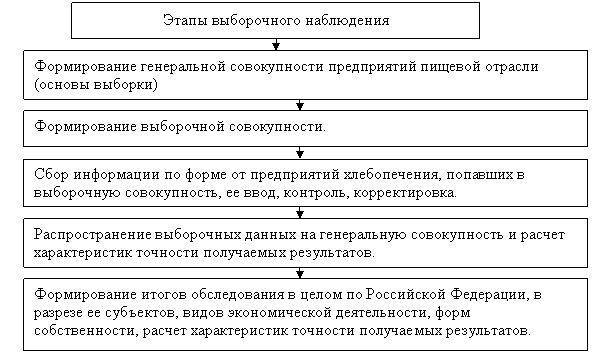 Рисунок 4 - Этапы работ по организации и проведению выборочного наблюдения на предприятиях пищевой промышленности