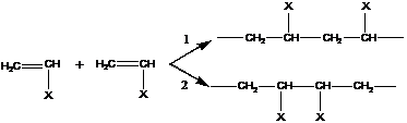 Наиболее распространенная конфигурация – голова-хвост, вследствие селективности в реакции присоединения мономера, например, из-за возможных стерических затруднений в случае близкого расположения боковых групп.
