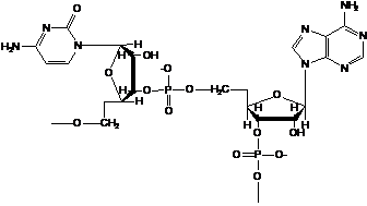Молекулы построены из соединенных фосфорэфирными связями остатков сахаров (рибозы или дезоксирибозы) с химически присоединенными азотистыми основаниями. Порядок чередования оснований задает генетический код.