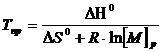 Это основное соотношение термодинамики полимеризации, связывающее равновесную концентрацию мономера, стандартные величины ∆Н° и ∆S° полимеризации и величину Тпр.