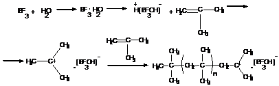Рассмотрим реакцию на примере получения полиизобутилена.