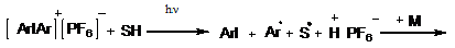 Ониевые соли R3O+X-, R4N+X - являются активными центрами полимеризации гетероциклических мономеров и могут использоваться как инициаторы их полимеризации. Соли арилиодония R2I+X - могут служить инициаторами катионной фотополимеризации, генерируя в процессе фотораспада сильную протонную кислоту: