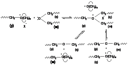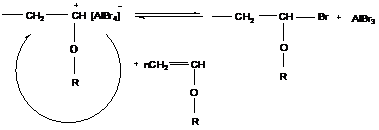 Такие реакции приводят к выделению исходного катализатора (кислоты Льюиса). При наличии в системе сокатализатора каталитический комплекс восстанавливается, и процесс катионной полимеризации продолжается.