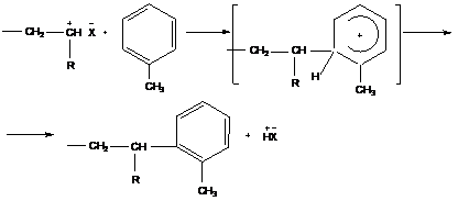 2. Реакции передачи цепи, также как и реакции роста, происходят по механизму электрофильной атаки: