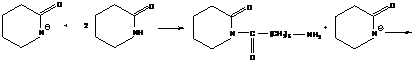 Заметим, что в случае (3) и (4) отрицательный заряд локализован не на конце растущей цепи, а на депротонированных молекулах мономера (лактама, N-карбоксиангидрида), которые следует определять как «активированные мономеры». В случае (4) после присоединения мономера с раскрытием цикла происходит отщепление молекулы CO2, вследствие чего состав образующегося полимера (полипептида) не соответствует составу исходного мономера. Тем не менее, эту реакцию рассматривают как полимеризацию по цепному механизму.