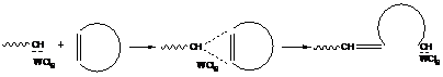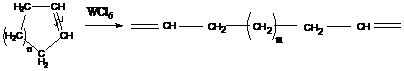 Специальным видом координационно-ионной полимеризации следует считать реакции, катализируемые соединениями вольфрама и некоторых других элементов. Эти соединения оказались активными в реакциях метатезиса олефинов. В случае циклоолефинов они вызывают полимеризацию с образованием полимеров, сохраняющих степень ненасыщенности исходных циклических мономеров. Это означает, что под действием катализатора рвутся сразу две связи