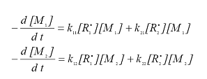 Скорости превращения мономеров при сополимеризации описываются уравнениями: