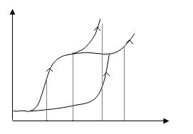 Происходит отставание во времени, обнаруживается процесс гистерезиса.