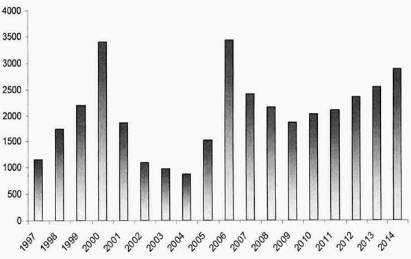 На российском рынке слияний и поглощений преобладали мега-сделки стоимостью выше 1 млрд. долл., а также крупные сделки (от 100 млн. до 1 млрд. долл.). На самые крупные 17-20 сделок пришлось более 60% всего рынка. Основной рост рынка слияний и поглощений достигнут не за счёт количества сделок, а за счёт роста их средней стоимости, причем тенденции развития различались для различных сегментов рынка (табл.1).