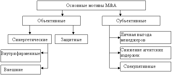 Укрупнённая классификация мотивов слияний и поглощений, которая позволяет, с нашей точки зрения, наиболее полно систематизировать их цели, представлена на рис.6.