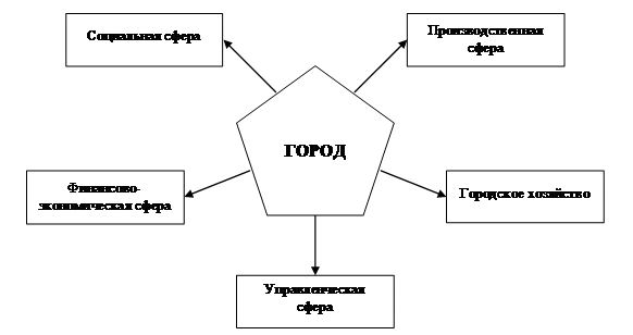 · социальная сфера, в состав которой входят все отрасли воспроизводства и духовного развития населения города;