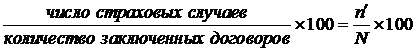 3. Частота страховых случаев характеризует число страховых случаев приходящихся на 100 заключенных договоров: