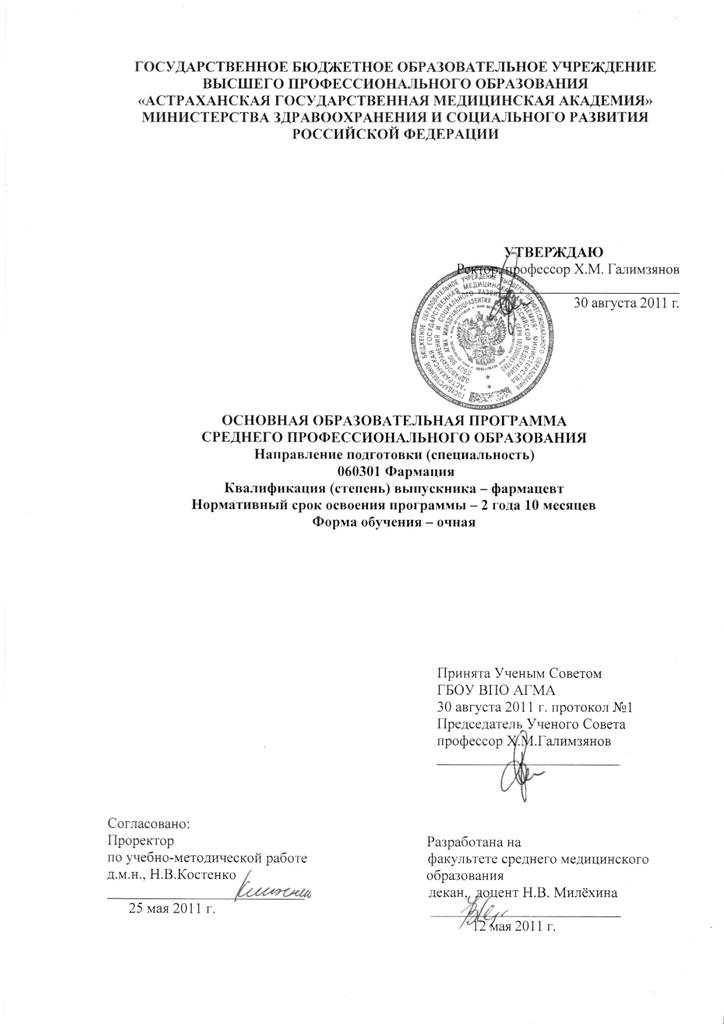1.1. Специальность 060301 Фармация утверждена Приказом Министерства образования науки Российской Федерации от 01.01.01 г. N 572.