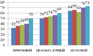 Результаты всех контрольных срезов в группах подвергались математической обработке с целью определения коэффициента успешности выполнения задания каждым студентом и целой группы и представлялись в виде гистограмм по всем пяти опытным и трём контрольным группам.