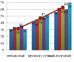 В опытных группах по всем пяти заданиям можно было наблюдать положительную динамику по результатам промежуточного и итогового срезов, что свидетельствует о том, что выполнявшиеся упражнения в рамках разработанной методики обучения, интегрируемой в общий образовательный процесс практического курса английского языка при условии обязательного использования микротекстов, фрагментов дискурса и глоссария средств образности английского и русского языков, формируют речевые навыки и умения образного монологического высказывания.