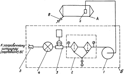 6 - приемный рукав с фильтром; В - кран для слива отстоя