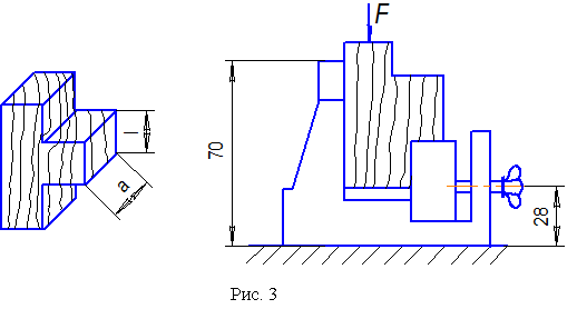 Для испытания древесины на скалывание вдоль волокон применяют образец и приспособление, изображенные на рис. 3.