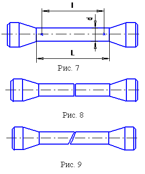 Для проведения испытания измеряют диаметр образца с точностью до 0,01 мм и расчетную длину образца ℓ с точностью до 0,1 мм. Вдоль образца прочеркивают прямую линию, подготавливают записывающее устройство.