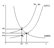 Величина заработной платы, соответствующая точке Wb, будет выплачиваться: а) монопсонистом. б) профсоюзным органом, при случае его вмешательства. в) совершенным конкурентом. г) олигопсонистом. | |
