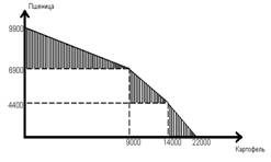 6.6. Дана кривая производственных возможностей фермера на трех полях со следующими координатами точек, характеризующие деятельность фермера: (22 000 К; 0 П), (0 К; 9 900 П), (9 000; 6 900), (14 000; 4 400). Все измерения заданы в тоннах.