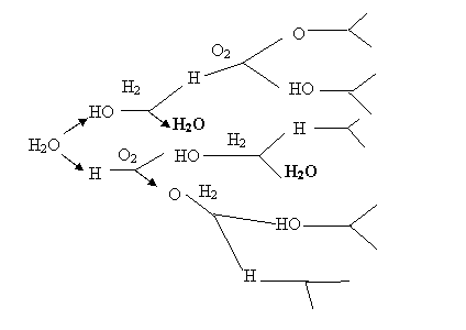 Схематически цепная реакция горения водорода представлена на рис. 3: