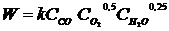 Экспериментально полученная зависимость скорости горения СО выглядит так: