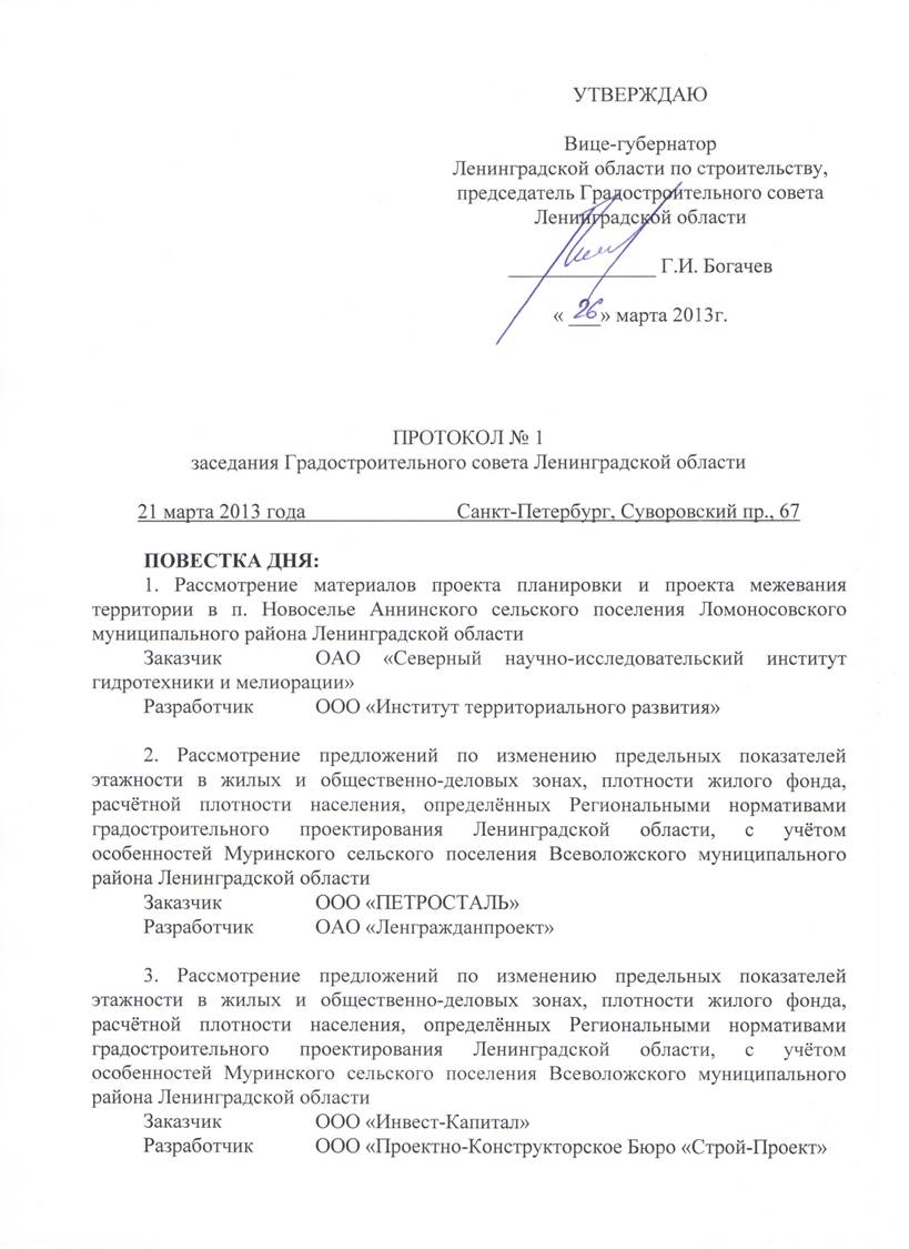 1.1. Отметить, что подготовка проекта планировки территории в п. Новоселье Аннинского сельского поселения Ломоносовского муниципального района осуществлена в соответствии с нормативами для городских поселений.