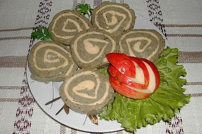 Возможны разные варианты оформления блюда - от праздничного рулета до обычной домашней "колбасы".