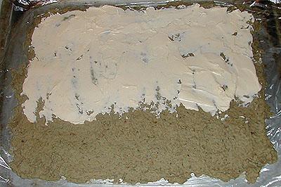 Хорошо его утрамбовать, иначе при нарезании этот слой может рассыпаться.