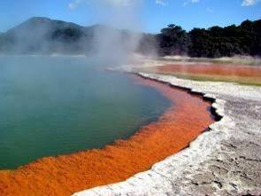 Затем поездка к озеру Роторуа, заполнившему громадную кальдеру вулкана и давшему название городу СПА, геотермальных явлений и маорийской культуры. Этот регион славится Долиной гейзеров и «благоуханием» сероводорода.
