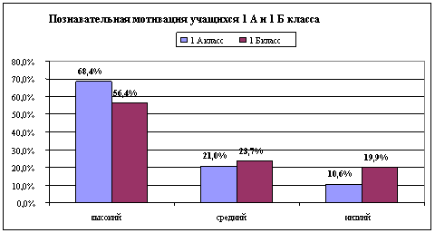 1. Более высокой познавательной мотивацией обладают учащиеся 1 А