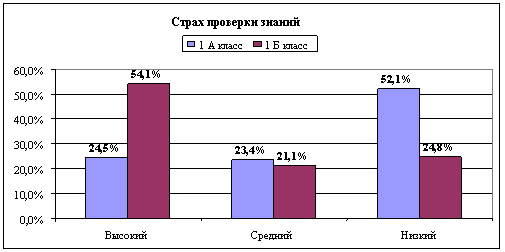 Сравнительный анализ уровней страха проверки знаний учащихся