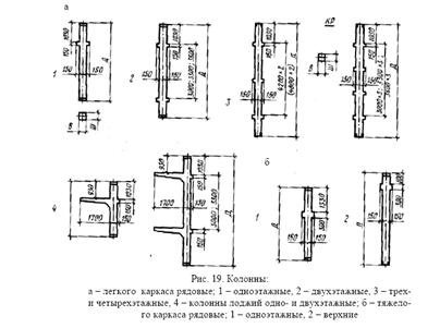 Одноэтажные колонны приняты для этажей высотой 2,4; 3,0; 3,3; 3,6; 4,2;4,8; 6,0; 7,2 м.