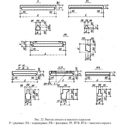 Конструктивные модификации элементов стоечно-балочных конструкций чрезвычайно разнообразны. Каркас проектируют, как правило, сборным железобетонным.