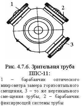 Зрительная труба ППС-11 (рис. 4.7.6), показатели которой приведены в табл. 4.7.1, снабжается двумя окулярами: прямым и уг-ловым. Последний применяется при наблюдениях в окуляр сверху или сбоку.