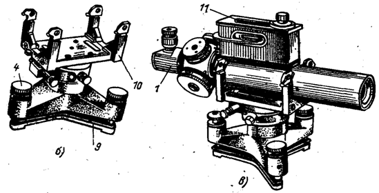Для установки ЦНД турбины с помощью зрительной трубы по оси валопровода турбины и для измерения относительных высотных отметок горизонтального разъема цилиндров и подшипников применяется полноповоротный штатив или нивелирная поворотная подставка.