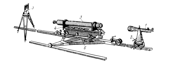 Более простым является применение струнно-оптического метода с использованием принудительного центрирования струны. В комплект аппаратуры входят натяжные устройства, приспособления с коническими пазами для центрирования струны на крайних точках и специальный микроскоп-вкладыш.