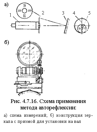 а также поверхностей агрегатов относительно друг друга при их взаимозависимой установке. Для измерения методами авторефлексии и автоколлимации отечественная промышленность выпускает плоские зеркала и специальные призмы. Находят применение также специальные комплекты приспособлений, в том числе, зеркала на призмах для выверки валов.