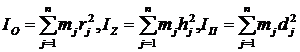 где mj — масса точки Аj ; rj , hj , dj — соответствующие расстояния до данной точки О, оси Z, плоскости П.