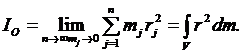 Чтобы вычислить момент инерции твердого тела относительно данной точки или оси, необходимо разбить тело на очень большое конечное число элементарных частей и определить приближенный момент инерции по формулам (5). Затем, чтобы получить более точное значение момента инерции, нужно вычислить предел приближенного момента инерции, предполагая, что число n частей, на которые разбито тело, стремится к бесконечности, а масса mj каждой части — к нулю.
