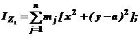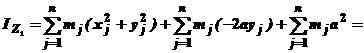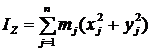 , где mj масса точки Aj. В системе Cxyz xj, yj, zj — ее координаты обозначим: x = xj; y = = yj; z = zj. Теперь опять же по определению осевого момента инерции запишем
