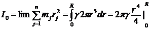 Пример 2. Найти момент инерции однородного круглого диска относительно его центра. Пусть имеем однородный круглый диск радиусом R, массой М, масса единицы площади его
